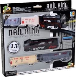 Részletgazdag, történelmi stílusú vonatszett bőséges tartozékokkal, amely a vasút rajongóinak kicsiben és nagyban is örömet szerez. Fény- és hangeffekteket, 2 vagont és egy mozdonyt, valamint teljes sínkészletet kínál. Az egyszerű összeszerelés és a 67 cm-es körátmérő kisebb terekben is garantálja a szórakozást. A 2× AA elemek nem részei a csomagnak.