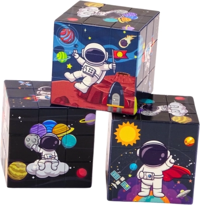 A varázskockát vidám színekkel és barátságos illusztrációkkal tervezték, hogy lenyűgöző és szórakoztató legyen a kis űrrajongók számára. A gyerekek feladata, hogy űrhajósokat és bolygókat ábrázoló képeket rakjanak ki, ami ösztönzi a kreativitásukat.