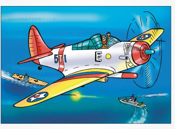 - Oktató jellegű motívumok – a gyerekek megismerik a hidroplánt, űrrepülőgépet, vadászgépet, légpárnás járművet, Boeingt és a légcsavaros repülőt.