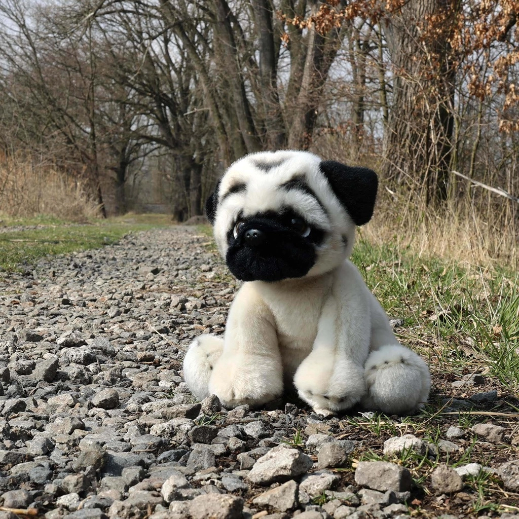 Ez a puha plüss mopsz a kicsi és nagy állatbarátoknak egyaránt örömet okoz. Az arc hű részletei, a fekete fülek és a finom szőrzet realista megjelenést kölcsönöznek, amelyet első érintésre meg lehet szeretni. A játék a minőségre és a tartósságra helyezett hangsúllyal készült, hogy bírja a mindennapos ölelgetést.