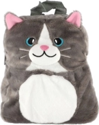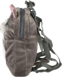 A hátizsák könnyű, kényelmes, és állítható vállpántokkal rendelkezik a helyes illeszkedésért. Két színből választhat: szürke kék szemekkel vagy fekete-fehér rózsaszín fülecskékkel. Ideális óvodába, játszótérre, kirándulásokra és utazáshoz.