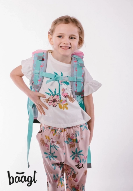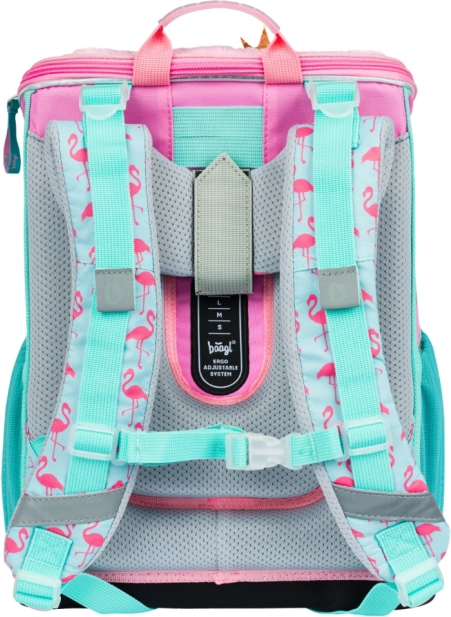 A Zippy Flamingó iskolai készlet ideális választás azoknak a gyerekeknek és szülőknek, akik a minőség, kényelem és stílus kombinációját keresik. Az ergonomikus iskolatáska ERGO ADJUSTABLE SYSTEM mozgatható hátrendszerrel rendelkezik, amely lehetővé teszi a pántok optimális beállítását a gyermek magassága szerint. Az iskolatáska teste szilárd, vízálló anyagból készült, megőrzi stabil formáját, és mindössze 1100 g súlyú.