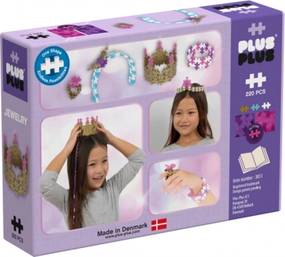 A PLUS-PLUS Ékszer kreatív készlet 220 darabot tartalmaz, amelyek lehetővé teszik, hogy gyönyörű ékszereket készíts csillogó színekben. Használd a fantáziádat és alkoss új dizájnokat!