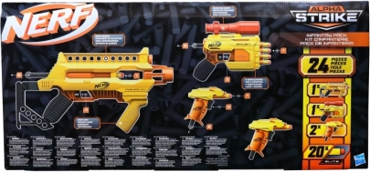 Fedezd fel a játék izgalmát a Nerf Alpha Strike blasterekkel. Ez a készlet 4 blastert és 20 hivatalos Nerf Elite nyilat tartalmaz, ideális kalandos csatákhoz barátokkal és családdal.