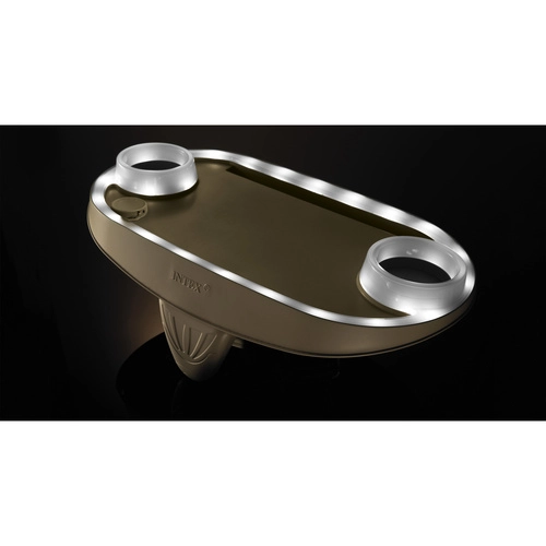 A LED háttérvilágítású polc az INTEX SPA-hoz okos kiegészítő, amely növeli a kényelmet pihenés közben. Könnyen felhelyezhető a pezsgőfürdő peremére, és azonnal stabil helyet biztosít italoknak és elektronikának. A finom LED fény kellemes atmoszférát teremt, és még kellemesebbé teszi minden estét a pezsgőfürdőben.