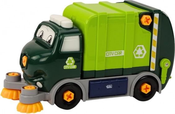 Ez a rajzfilmes DIY újrahasznosító autó betekintést ad a gyerekeknek a gépek és a mechanika világába. A biztonságos játék fúróval, csavarhúzóval és cserélhető fejekkel a gyerekek saját maguk szerelhetik szét és rakhatják össze az autót, ezáltal fejlesztve a finommotorikát, a logikus gondolkodást és a türelmet. Az első kefék menet közben forognak, a mellékelt kukával együtt pedig autentikus utcatisztítási szimulációt teremtenek.