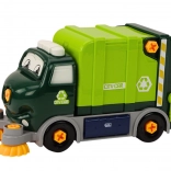 A zöld újrahasznosító teherautó a mellékelt kukával a hulladékválogatásról és a környezetvédelemről tanít, értelmes játékra ösztönöz.