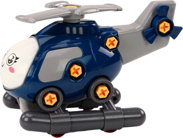 A kék DIY rajzfilmes helikopter ideális játék minden kisfiúnak, aki arról álmodik, hogy szerelő lesz, és szeretné felfedezni, hogyan működnek a gépek. Ez a bájos, kék színű helikopter élénk, figyelemfelkeltő színeivel azonnal magára vonja minden gyermek figyelmét.