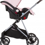 Az állítható hordozókar megkönnyíti a kezelést, a levehető, összecsukható napellenző pedig fény és huzat ellen véd az autón kívül is.