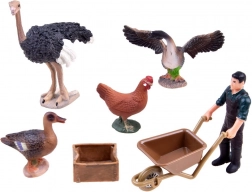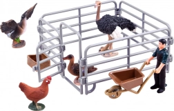 A csomagban talál egy feltűnő struccot, klasszikus udvari szárnyasokat – tyúkot, ludat és kacsát –, egy gazda figurát talicskával, valamint karámelemeket saját mini farmja megalkotásához. A változatos kiegészítőknek köszönhetően könnyű jeleneteket építeni és bővíteni az állattartással kapcsolatos ismereteket.