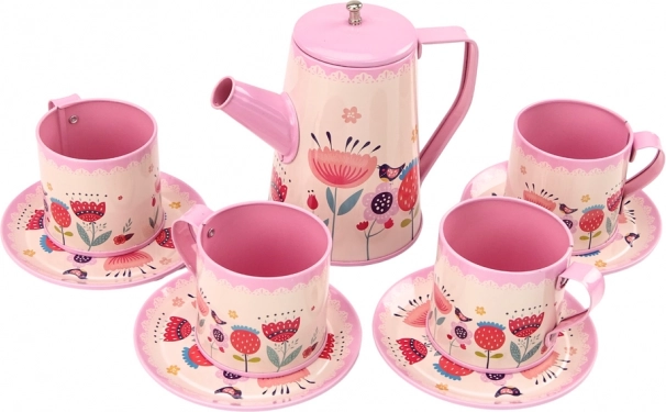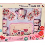 Ez a komplett gyerek teaszett a kávézó varázsát hozza el közvetlenül a gyerekszobába. Könnyű és strapabíró fém kivitelének köszönhetően a gyerekek könnyedén felszolgálhatnak teát vagy kávét barátaiknak és plüssállataiknak. A rózsaszín, virágmintás dekor első pillantásra magára vonja a figyelmet, és támogatja a kreatív szerepjátékot.