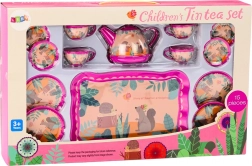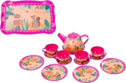 Ez a varázslatos kávé- és teaszett minden kis házigazdát elbűvöl. A szettben találsz egy elegáns tálcát a szervírozáshoz, egy kancsót teához vagy kávéhoz, 4 csészét csészealjjal és 4 desszerttányért. Minden rózsaszín árnyalatban, erdei állatos motívumokkal díszítve, ami különleges hangulatot ad a játéknak.