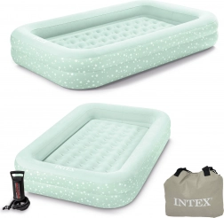 Intex márkájú felfújható matrac gyerekeknek ideális otthoni és utazási használatra. A csomag tartalmaz egy dugattyús pumpát a könnyű felfújáshoz és egy Boston szelepet a gyors leeresztéshez. A matrac puha velúrral van borítva, és a Dura-Beam technológia biztosítja a magas tartósságot és az alváshoz szükséges kényelmet.