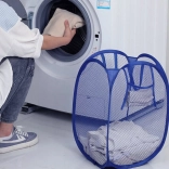 Ez a levegős szennyestartó ötvözi a praktikusságot és a helytakarékosságot. A hálós szerkezet biztosítja a légáramlást, így belül nem marad meg a nedvesség vagy a szag. A stabil, mégis rugalmas váz révén a kosár önmagában megáll, és néhány másodperc alatt kompakt formára hajtható.