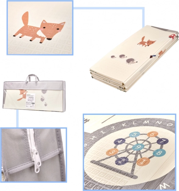 Összecsukható, kétoldalas hab oktató játszószőnyeg ideális megoldás a játékra és szórakozásra szolgáló tér kialakításához. Ez az innovatív szőnyeg nemcsak bájos grafikájával dobja fel a gyerekszobát, hanem biztonságos és kényelmes helyet is biztosít a játékhoz.