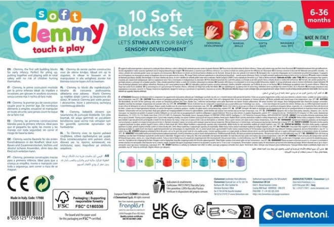 Puha kockák gyermekeknek a BABY CLEMENTONI-tól, ideális játék már 6 hónapos kortól. Ezek a kockák számos játéklehetőséget kínálnak, és segítenek a kisgyerekeknek fejleszteni a képzelőerejüket.