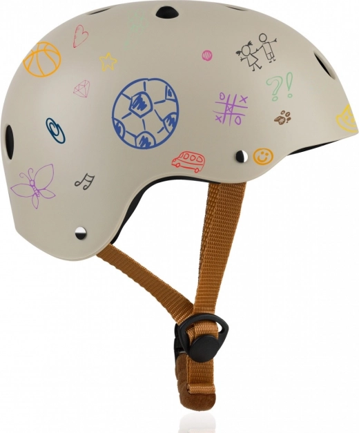 A biztonságos és kényelmes LIONELO gyerek sisak Bézs Homok színben védi a fejet kerékpározás, rollerözés és korcsolyázás közben. Tartós ABS külső héjjal, ütéselnyelő EPS habbal, széles, 50–56 cm-es állítási tartománnyal, 11 szellőzőnyílással és puha állvédővel rendelkezik. A gyerekek krétával vagy filctollal díszíthetik, így kifejezhetik kreativitásukat. Az EN 1078 tanúsítvány és az Intertek tesztek igazolt biztonságot nyújtanak.