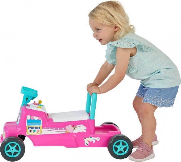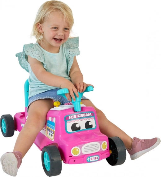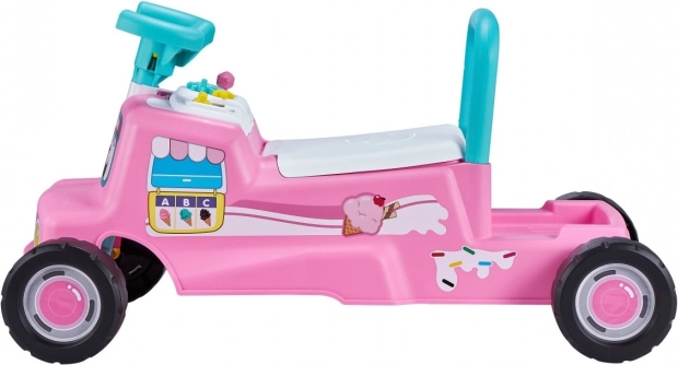 A rózsaszín, fagyis kisautó megjelenésű lábbal hajtós járgány rengeteg mókát és inspirációt nyújt a fagyis szerepjátékhoz. A masszív ülés, a dudás kormány és a hátsó támla segít fejleszteni a koordinációt, a mozgásbiztonságot és a fantáziát.