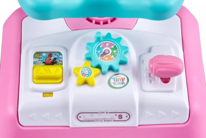 Aranyos, rózsaszín, fagyis autó stílusú lábbal hajtós járgány a TINY TOWN-tól, amely örömet szerez a kis sofőröknek és a kíváncsi gyalogosoknak is. Kínál ülés alatti tárolóhelyet, dudás kormányt és hátsó támaszt/fogantyút az első lépésekhez. A stabil négy kerék és a masszív felépítés ideális a játékhoz otthon és a szabadban is.