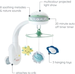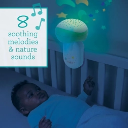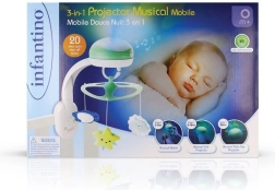 Az INFANTINO 3 az 1-ben körforgó együtt nő gyermekével: a forgó kiságy fölötti körforgótól a kiságyra szerelhető vetítő/lámpán át az önálló asztali éjjeli lámpáig. Nyugodt csillagmintákat vetít, és hat dallam, valamint két természet-hang közül választhat, amelyek segítik az elalvást és kellemes esti rutint teremtenek.