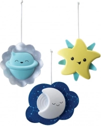 - 3 használati mód: körforgó 0–5 hónap, kiságyra szerelhető vetítő/lámpa 5–18 hónap, asztali éjjeli lámpa 18 hónapos kortól.