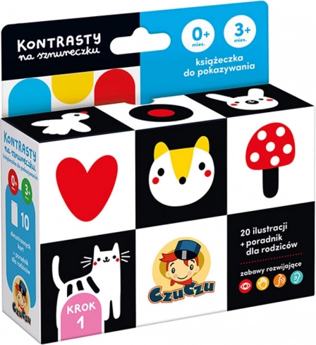 Hogyan játssz a babával? Szeretettel, gyengéden és a legkisebbeknek szánt eszközök segítségével! Eljött az első könyvecske ideje: olvassatok együtt már az élet első napjaitól. Rendkívül kellemes módja annak, hogy aktívan támogasd gyermeked fejlődését és egyedülálló köteléket alakíts ki köztetek. A Kontrasztok zsinóron egy rendkívül aranyos, zsinóros könyvecske a legkisebb babáknak.