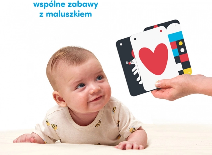 Helyezd a kedvenc kártyákat a hason fekvő baba elé. Remek motiváció a kicsinek, hogy gyakorolja a fej emelését!