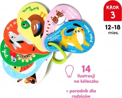 A karikával összefogott, masszív lapoknak köszönhetően a könyvecske könnyen kézben tartható, nem gyűrődik, és felakasztható babakocsira vagy kiságyra. Otthon és útközben is remek választás. A szülőknek szóló minikalauz tippeket ad, hogyan hozhatják ki a legtöbbet a közös tevékenységből.