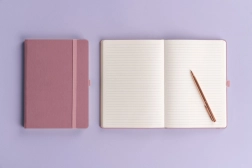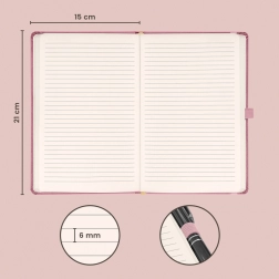 Ez a rózsaszín jegyzetfüzet klasszikus és elegáns, ami kiváló választássá teszi minden alkalomra. Felületének szerkezete lehetővé teszi a vállalati logók könnyű dombornyomását. A 15 x 21 cm-es méretek elegendő helyet biztosítanak a gondolataid és terveid számára.