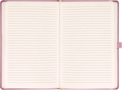 Elegáns rózsaszín Neo jegyzetfüzet vonalas oldalakkal, ideális vállalati arculat kialakításához és személyes jegyzetekhez.