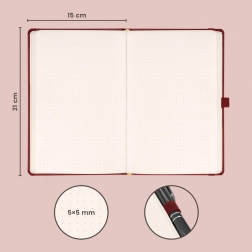 Ez a pontozott jegyzetfüzet elegáns bordó dizájnnal rendelkezik, mely mindennapi jegyzetekhez és stílusos munkakellékként is kiválóan alkalmas.