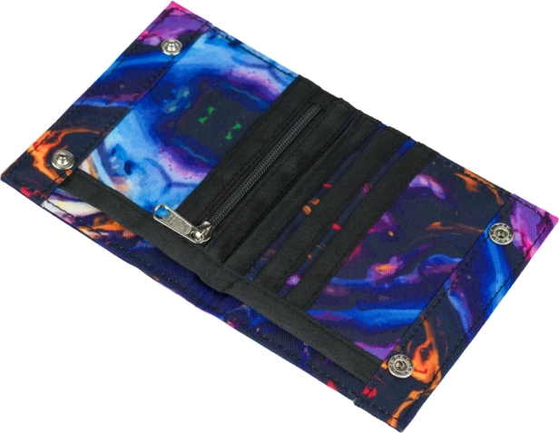 Ez a diák pénztárca ideális választás iskolába és szabadidőhöz egyaránt. A két patentos záródásnak köszönhetően a tartalom biztonságban marad, míg a különálló cipzáras aprópénztartó átláthatóan, kiborulás kockázata nélkül őrzi az aprót.