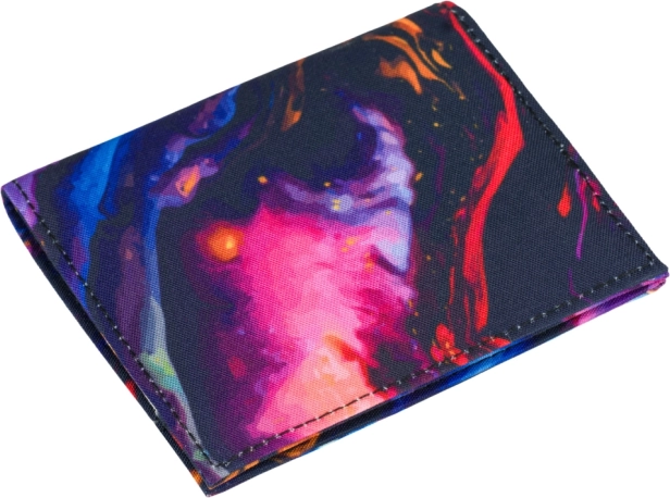 A belső elrendezés minden lényeges elemet tartalmaz: rekeszt a bankjegyeknek, valamint kártya- és igazolványtartó zsebeket. A stílusos márvány minta modern megjelenést kölcsönöz a pénztárcának, amely bármilyen öltözékhez illik.