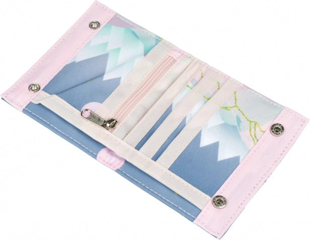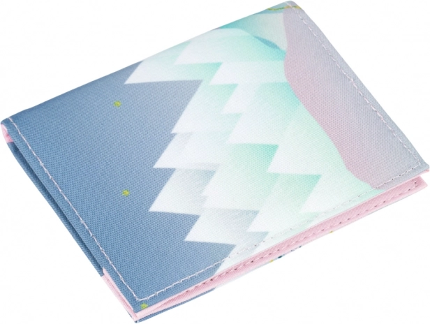 A modern motívum kék‑rózsaszín árnyalatokban harmonizál az iskolai kiegészítőkkel, és örömet okoz mindenkinek, aki kedveli a friss, játékos stílust.