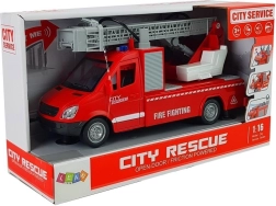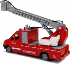 A jármű mozgatható létrával van felszerelve, hossza akár 42 cm is lehet! A diódák nem hiányoznak, amelyek távoli figyelmet képesek vonzani, valamint az elülső víztartály, amely a szórófejes pumpa forrása – csupán néhány pumpálás szükséges. Összességében a játék 1:16 arányban van megmunkálva.