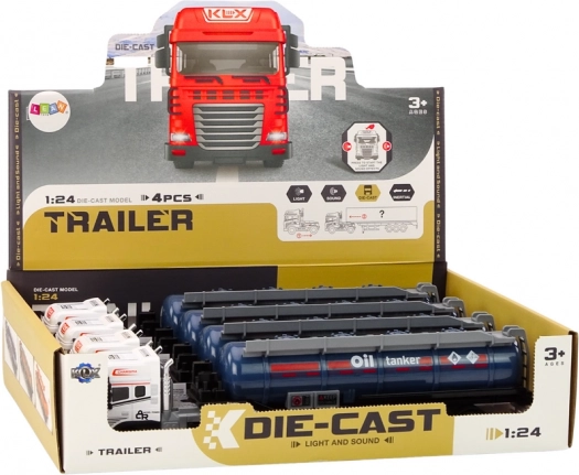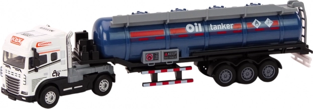 Az 1:24 méretarányú tartálykamion élethű modellje izgalmas és tanulságos játékot kínál a gyerekeknek. A leválasztható pótkocsinak, a fény- és hangeffekteknek (motorindítás és tolatás), valamint az önálló mozgást lehetővé tevő meghajtásnak köszönhetően rengeteg szórakozást nyújt. A modell részletgazdag kivitelű, fehér fülkével, és megfelel a CE és EN71 szabványoknak, 3 éves kortól ajánlott.