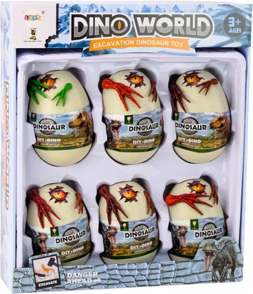 A doboz hat dinoszauruszos tojást rejt a 3 éves kortól ajánlott kis felfedezőknek. Minden tojás új meglepetést és újabb paleontológiai kihívást ígér.