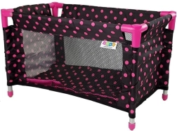 Aranyos és egyben praktikus babakisbágyat keres? Az Alice modell fekete–rózsaszín, pöttyös kivitelben élethű gondoskodós játékot kínál. A hálós oldalfalaknak köszönhetően a gyerekek jól rálátnak a babára, és játék közben is könnyen felügyelhetik.