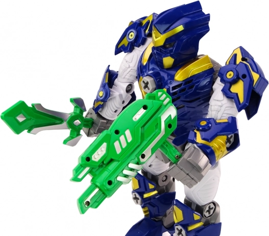 A robot karddal és fegyverrel van felszerelve az izgalmas küldetésekhez. A színes kivitel és a mozgó alkatrészek serkentik a fantáziát és a kreatív játékot.