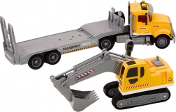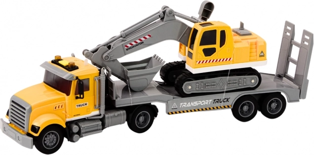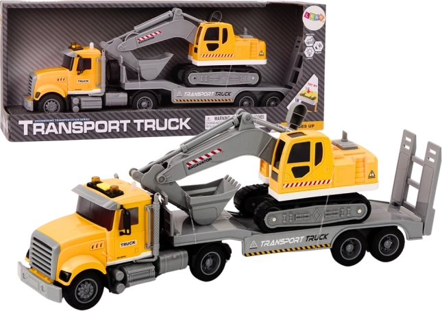 Bemutatjuk a sárga játék teherautót lánctalpas kotrógéppel, amely ideális az építőipari gépek kis rajongóinak. A gyerekek elmerülhetnek az építés világában a valósághű tervezés révén, amely lehetővé teszi az igazi építési munkálatok szimulálását.