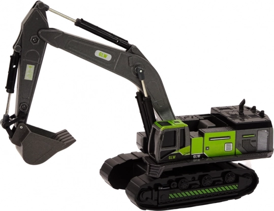 Fém lánctalpas kotrógép 1:55 méretarányban fekete-zöld kivitelben, kitűnő játék a kis építkezés-rajongók számára. Kiváló minőségű anyagokból készült, hangsúlyt fektetve a részletekre és tartósságra, fejleszti a gyermekek fantáziáját és kézügyességét.