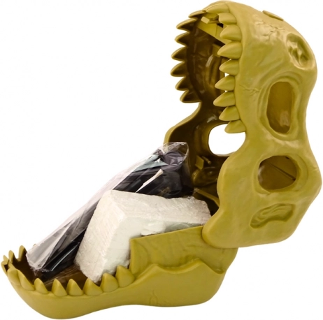 Az egész készlet egy műanyag dinoszauruszkoponyában kapott helyet, amely kettős funkciót tölt be: praktikus tároló és stílusos dekoráció, ideális egy kis dinoszauruszrajongó szobájába. Így a készlet nemcsak hosszan tartó szórakozást nyújt, hanem vonzó díszítőelemet is.