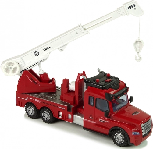 A modell központi eleme a kihúzható daru, amely akár 34 cm hosszú + 10 cm kiegészítő kihúzással, leereszthető kampóval kábelen. Haladás közben felkapcsolnak az első és hátsó lámpák, tolatáskor figyelmeztető jelzés hallható, kanyarodásnál pedig oldalsó irányjelzők aktiválódnak. A minőségi anyagok tartósságot és biztonságot garantálnak, az átlátszó ablakos csomagolás pedig remek ajándékká teszi.