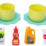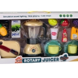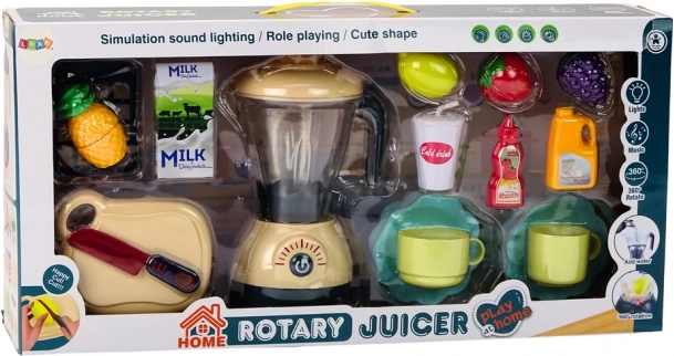 Szórakoztató konyhai készlet a legkisebbeknek elektromos turmixgéppel, amely fény- és hangeffektekkel, valamint forgó funkcióval rendelkezik. A gyerekek a tartályba vizet tölthetnek, és figyelhetik a „koktél” örvénylését, a tépőzáras gyümölcsöt műanyag késsel vághatják a vágódeszkán, majd két csészébe aljjal szervírozhatják. Remek választás a finommotorika fejlesztésére, a képzelet és a szerepjáték támogatására biztonságos kivitelben.