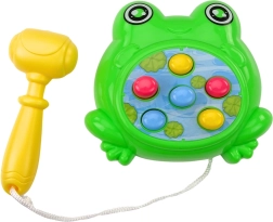 A zöld béka alakú mini játék a klasszikus Wac‑a‑Mole hordozható változata: a nyílásokból váratlanul jelennek meg célpontok, amelyeket a mellékelt kalapáccsal kell a lehető leggyorsabban eltalálni. Kompakt méreteinek köszönhetően könnyen magaddal viheted kirándulásra, piknikre vagy nyaralásra.