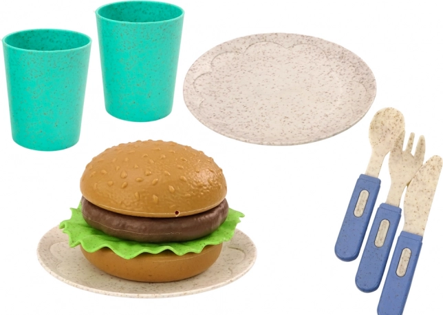 11 darabból álló gyerek étkészlet, ami ideális azoknak a gyerekeknek, akik szeretnek saját ünnepeket létrehozni és különböző szerepeket játszani. Ökológiai, erős műanyagból készült, a készlet tartós, biztonságos és környezetbarát, így ideális a mindennapi játékhoz.