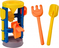 Nagy homokozó készlet malommal, lapáttal, gereblyével, öntözőkannával és formákkal
