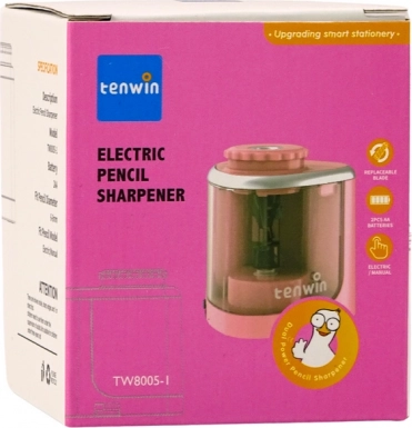 A kompakt és stílusos, rózsaszín TENWIN hegyező 6–8 mm átmérőjű ceruzákhoz és színesceruzákhoz gyors és precíz hegyezést kínál otthon, az iskolában és az irodában. Az elektromos és kézi üzemmód közötti választásnak, a cserélhető pengének (pótpenge a csomagban), az átlátszó tartálynak és a fedél biztonsági zárjának köszönhetően a használat maximálisan kényelmes. Tápellátás: 2× AA elem (nem tartozék).