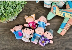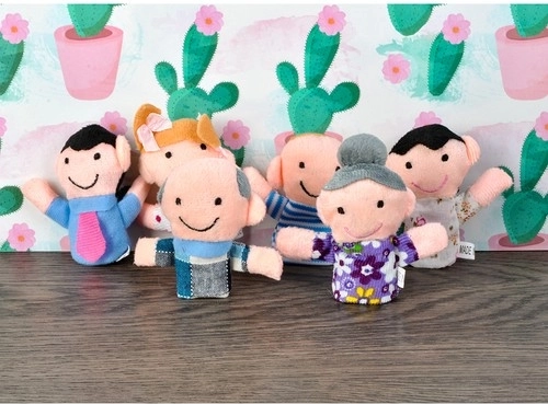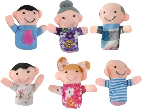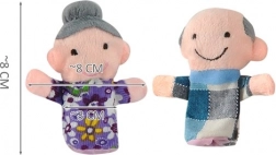 A készletünk 6 ujjbábot tartalmaz, amelyek családi karaktereket jelképeznek, nagyszülőktől kezdve egészen a gyerekekig. Kisgyerekek kezére alkalmas, de a felnőttek is könnyen kezelhetik ezeket az ujjbábokat kisebb ujjaikon.