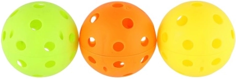Háromszínű floorball labdakészlet, amely nemcsak minden floorball mérkőzéshez, hanem más labdajátékokhoz is jól használható.